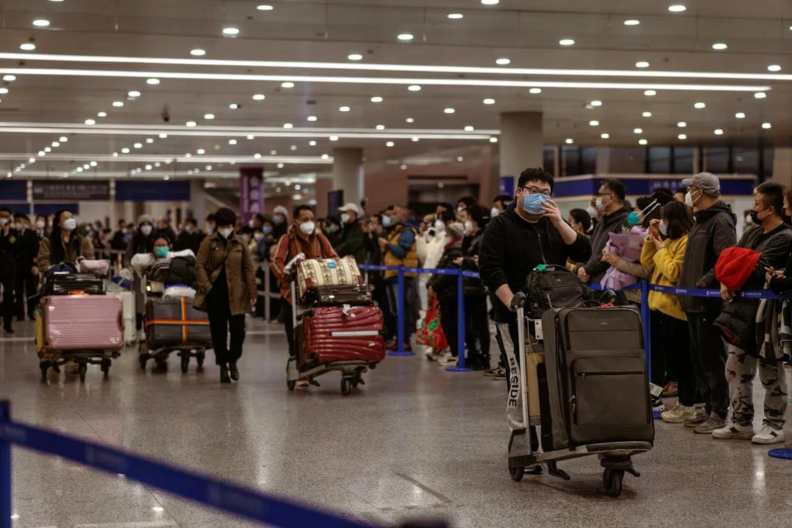 Travellers arrive at Shanghai’s Pudong International Airport on Jan 8, 2023.