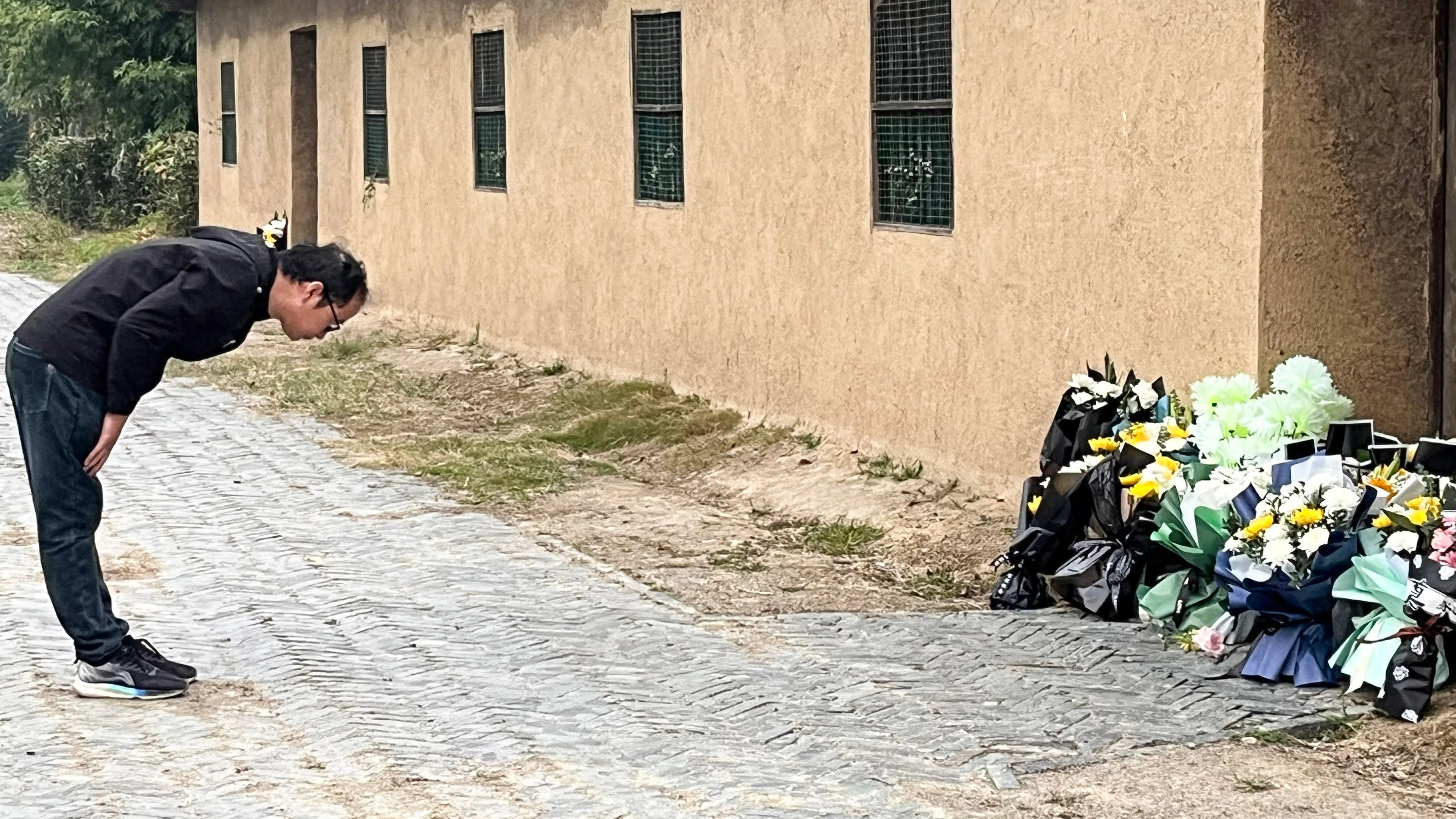 A man bows in front of the former house of former Chinese premier Li Keqiang in Dingyuan county, Chuzhou city, in China’s eastern Anhui province on Oct 27, 2023.