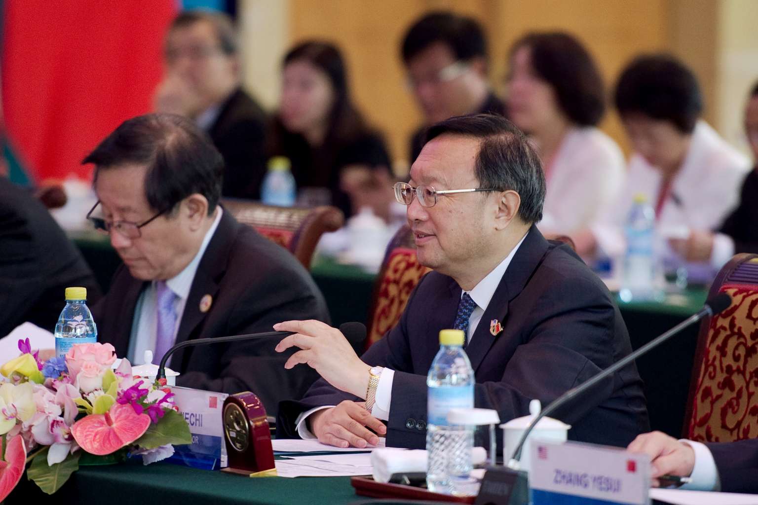 China's State Councillor Yang Jiechi (right) delivers a speech at the US-China strategic and economic dialogues in Beijing, on June 7, 2016.
