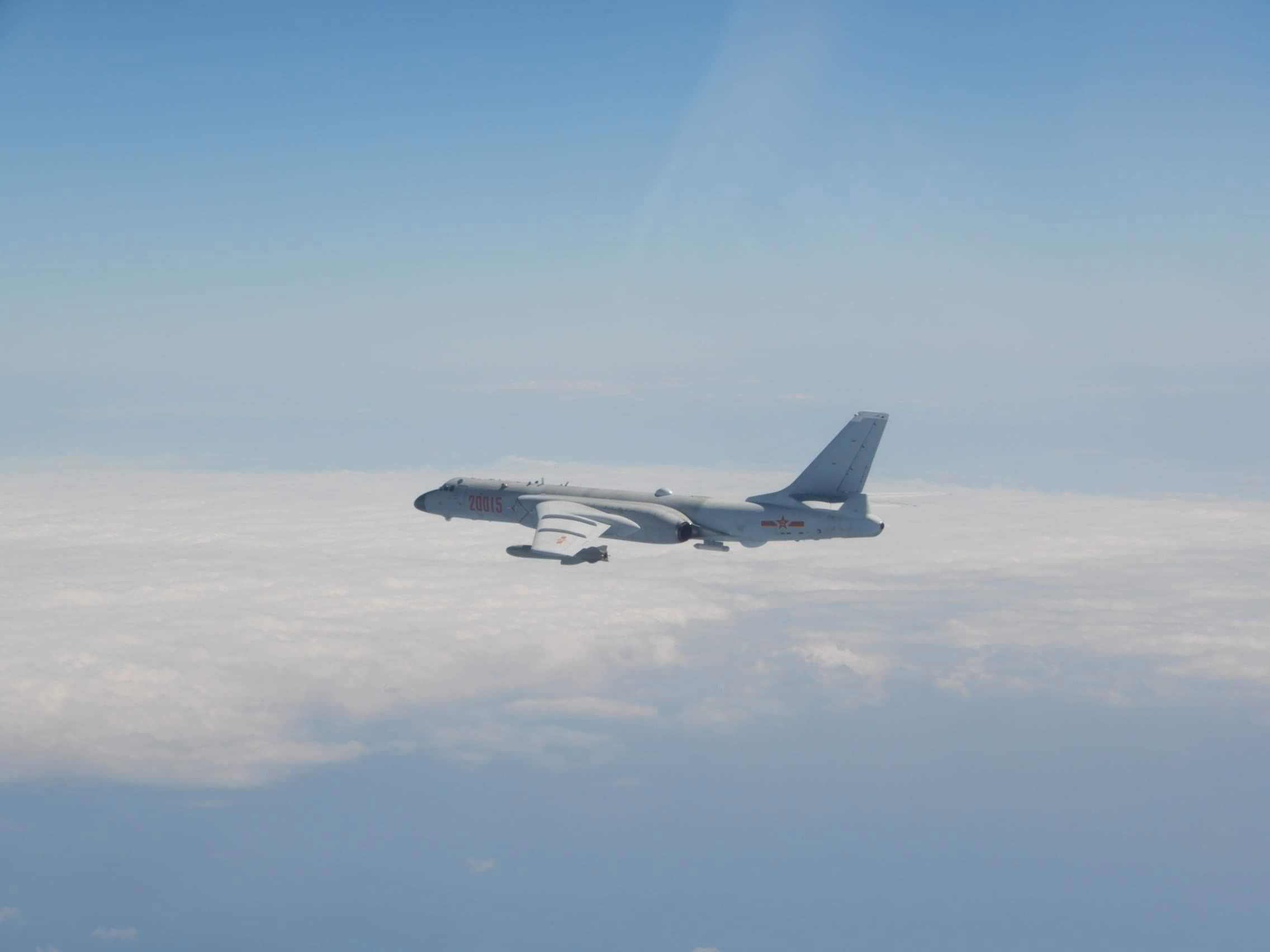 A Chinese PLA Xian H-6 jet bomber trespassing into Taiwan's ADIZ on Oct 4, 2021.