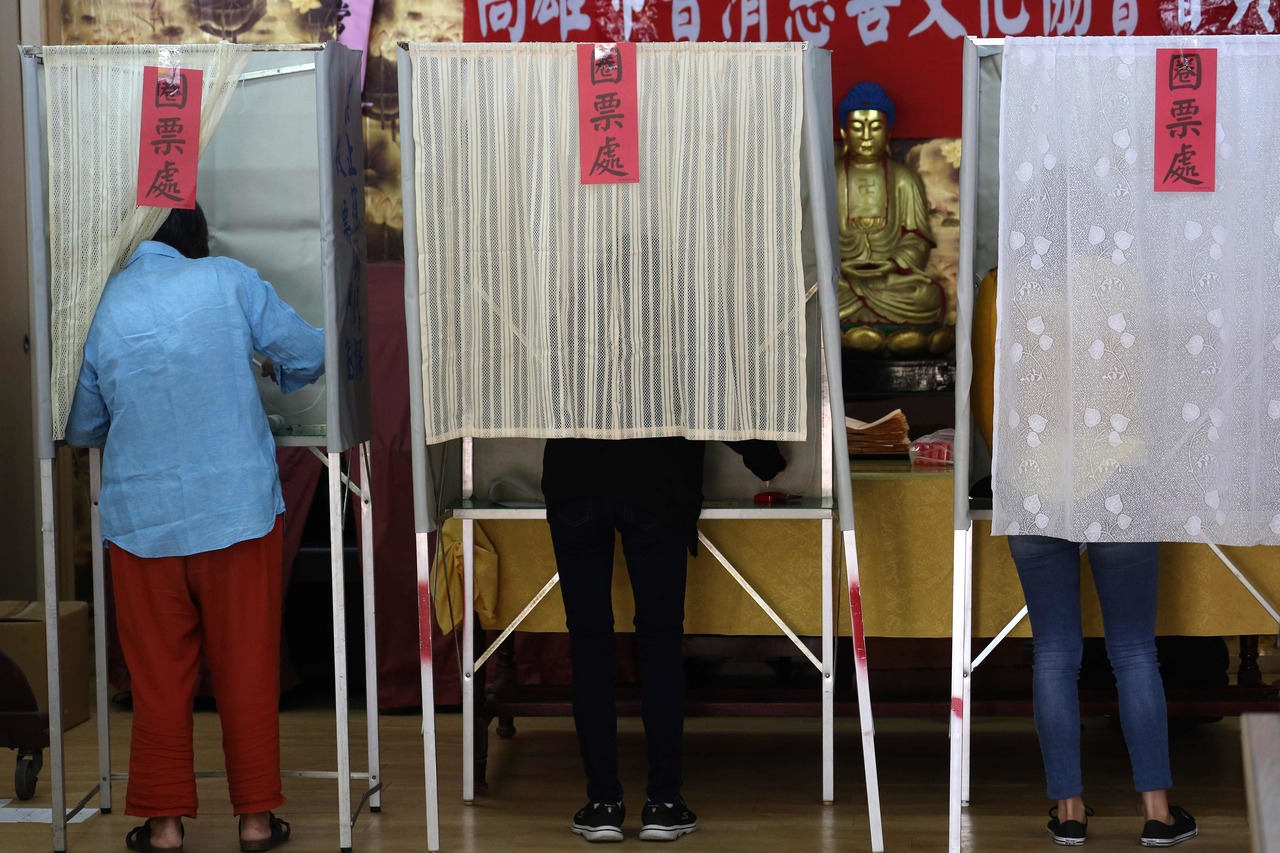 Residents vote at a polling station at Linyuan District in Kaohsiung, on Jan 11, 2020.