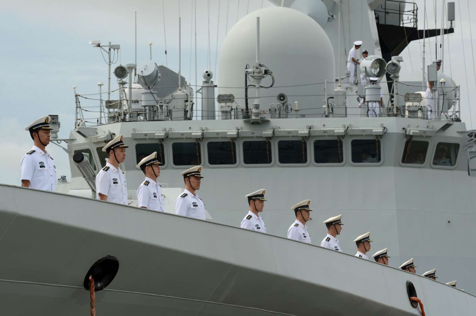 Chinese Navy personnel aboard a People's Liberation Army ship on Oct 4, 2016.