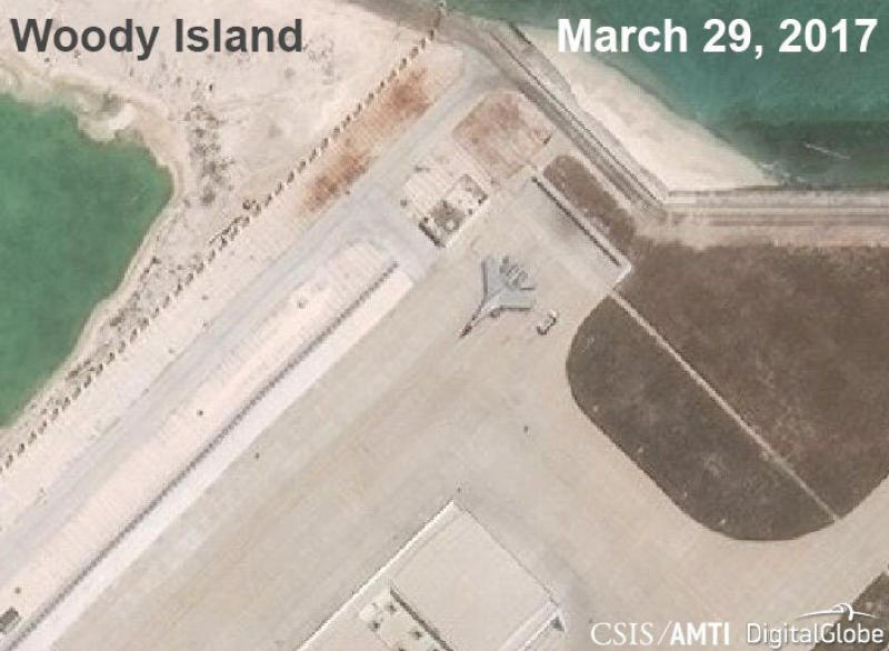 The Asia Maritime Transparency Initiative said satellite images from April 28 showed the first confirmed deployment of a military aircraft - a Shaanxi Y-8 transport plane - on Subi Reef. The structure hosts one of three runways China has built as part of a massive dredging and reclamation operation in the Spratlys chain since 2013, and was the last of three where military aircraft had been observed.