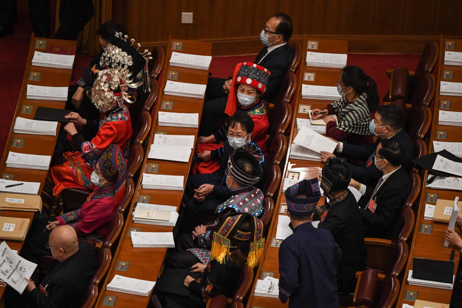Delegates arrive for the opening session of the National People's Congress at the Great Hall of the People in Beijing, on March 5, 2022.