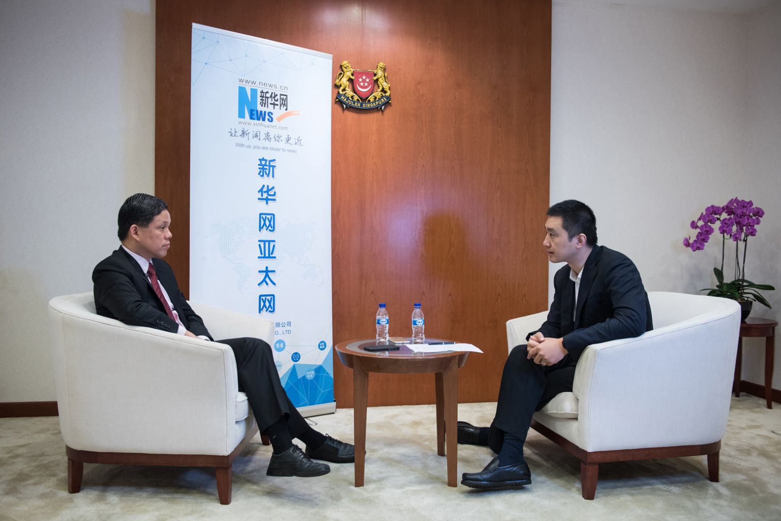 During an interview with Xinhuanet, Trade and Industry Minister Chan Chun Sing (left) said the enhanced trade pact will provide Singapore businesses with greater trade facilitation and investment protection in China.