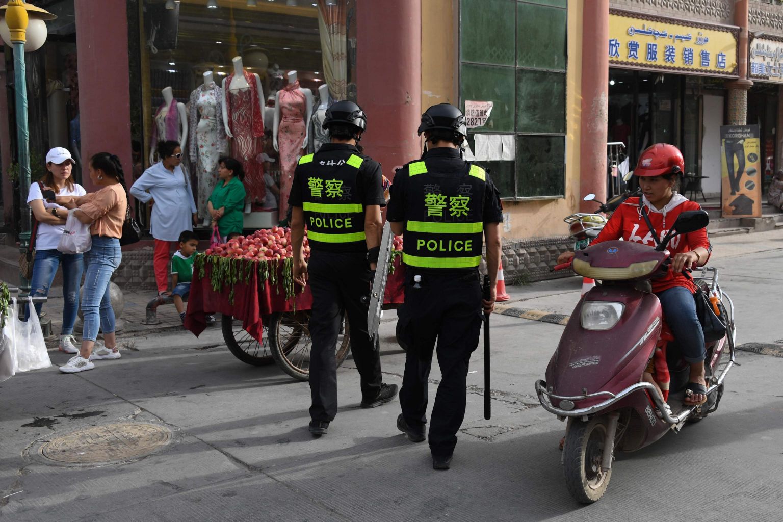 Police officers patrolling in Kashgar in China's western Xinjiang region, on June 4, 2019.