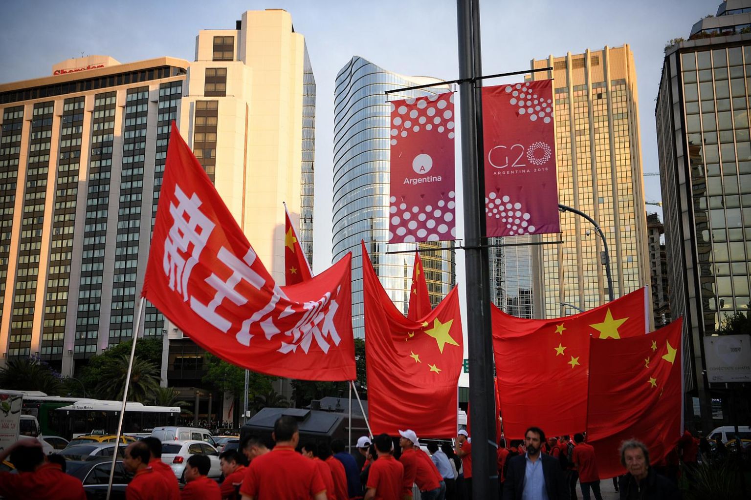 Chinese citizens await the arrival of Chinese President Xi Jinping in downtown Buenos Aires ahead of the G-20 summit, on Nov 29, 2018.