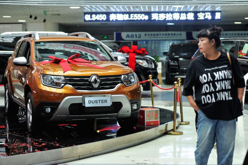 A customer looks at an imported Renault car in a showroom in China's eastern Shandong province.