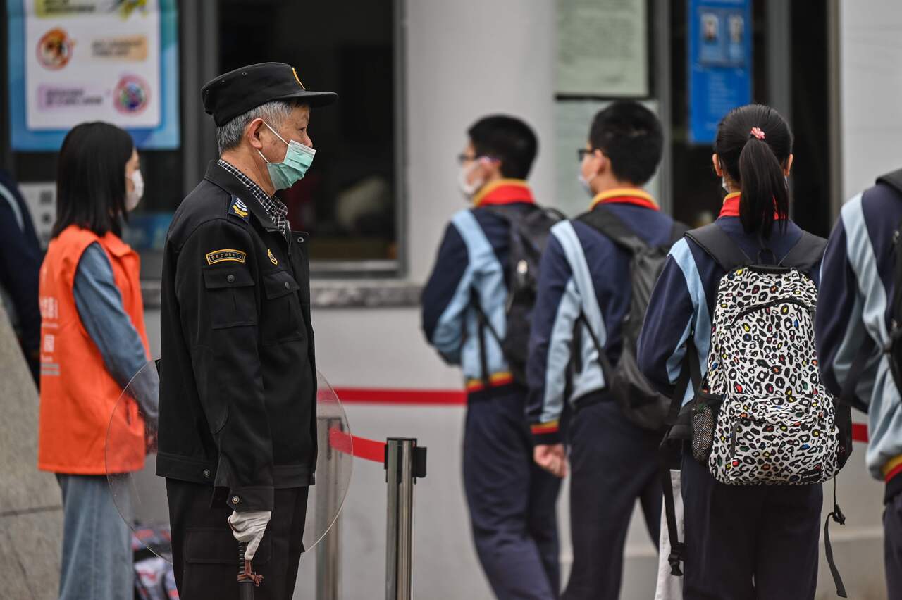 "I brought masks, garbage bags and disinfectant," Meng, who had just taken the subway for the first time in months, told AFP as children in masks and uniform tracksuits filed past police and officials to enter the school.