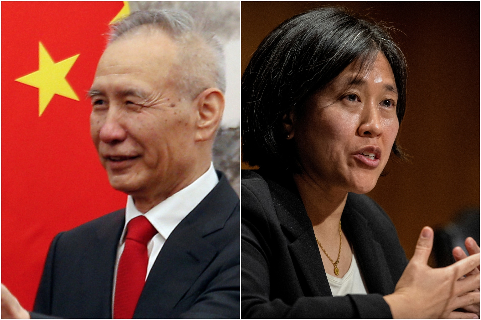 China's Vice-Premier Liu He (left) spoke with US Trade Representative Katherine Tai on May 27, 2021.