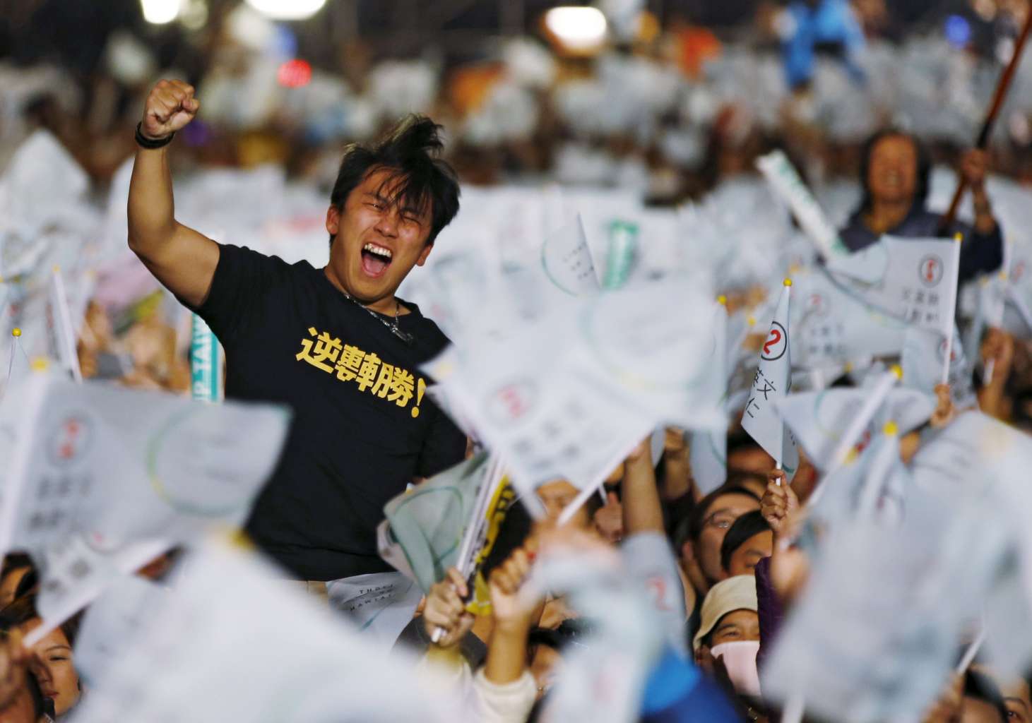 A supporter of Tsai Ing-wen celebrates on Jan 16, 2016.