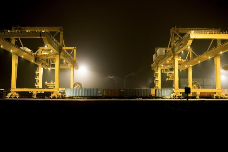Though monitored by sophisticated technology, the main activity carried out at Khorgos is very low-tech: laboriously moving containers that arrive on trains from China onto railway cars that run on the wider gauge tracks used by the Kazakh and Russian railway systems. The same operation happens in reverse for trains heading back the other way.