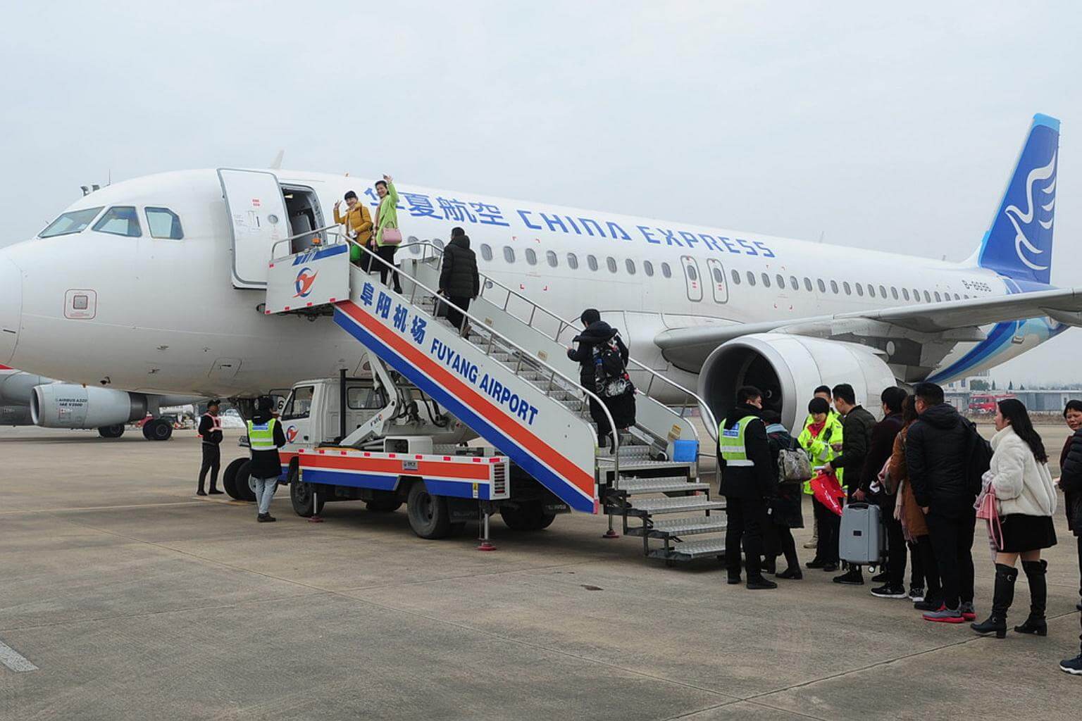 Passengers board a flight bound for Chongqing at Fuyang Xiguan Airport in Anhui province on Jan 15, 2018.