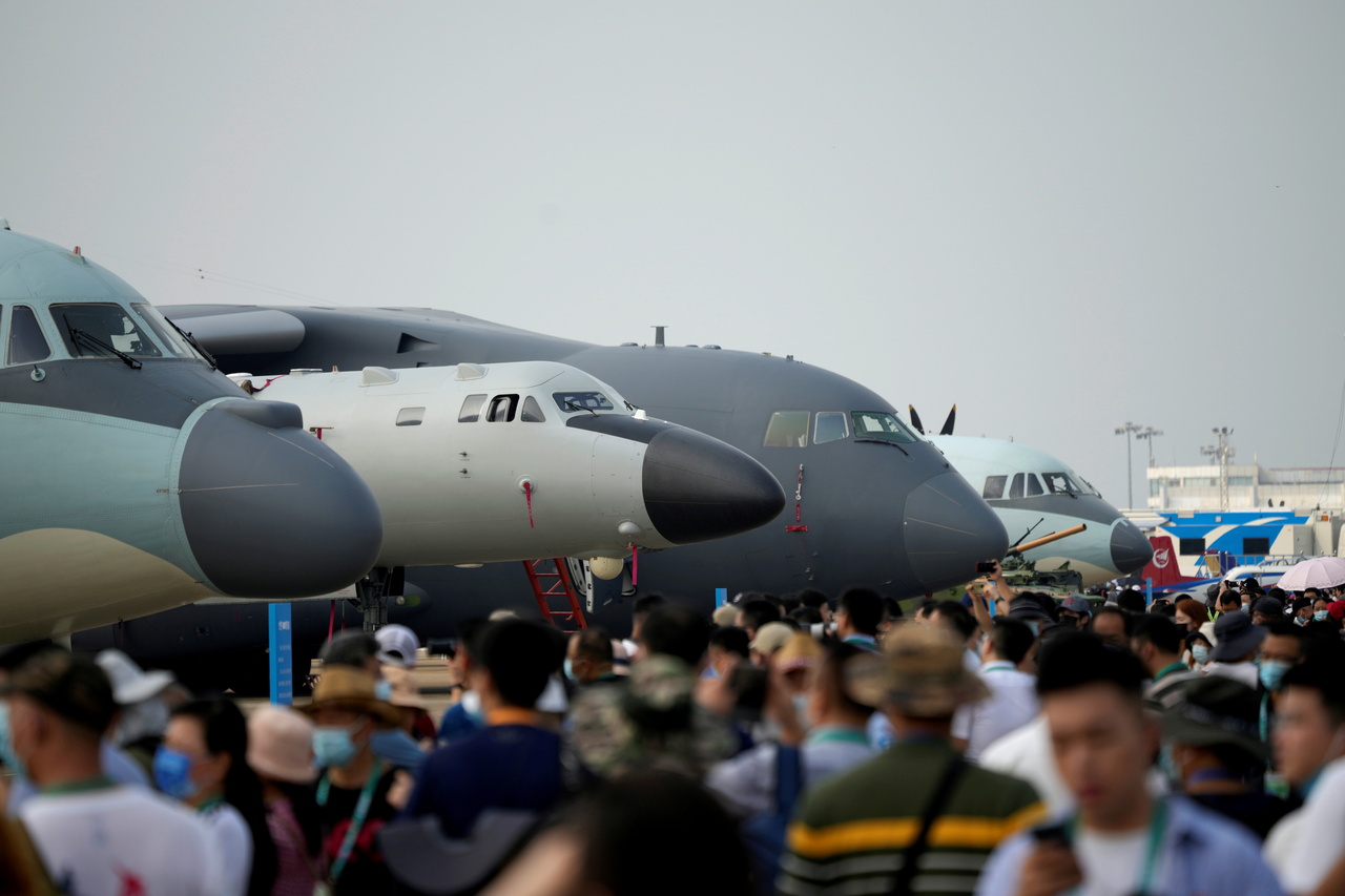 Military aircraft displayed at Airshow China in Zhuhai, in China's Guangdong province, on Sept 29, 2021.