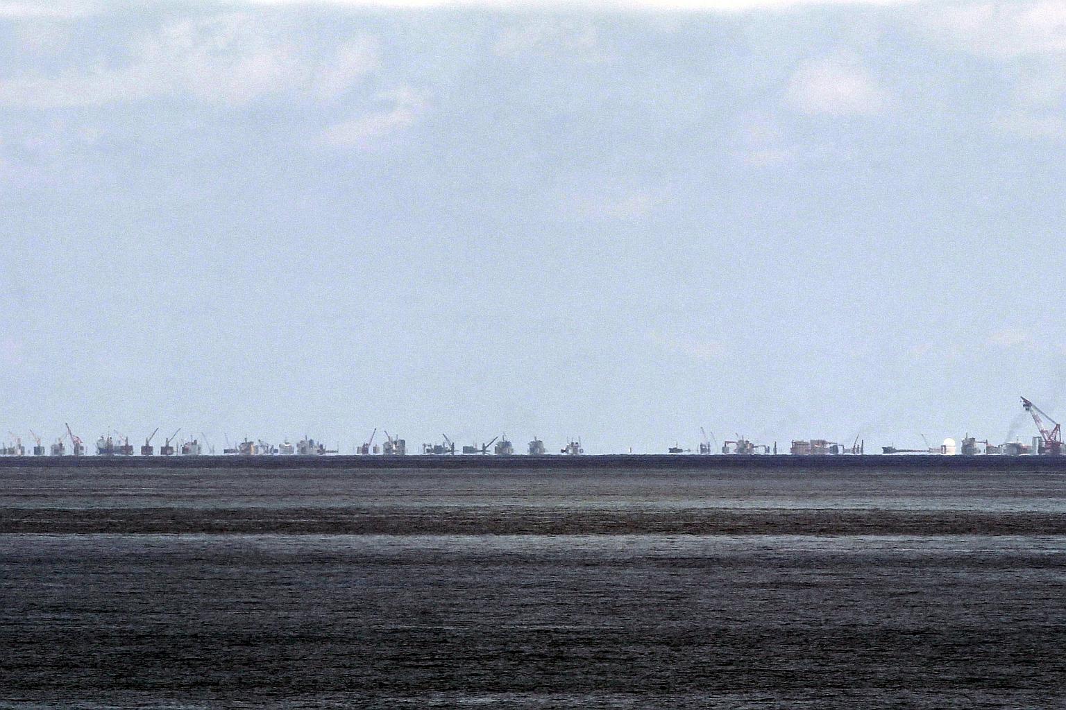 The alleged on-going land reclamation of China at Subi reef is seen from Pagasa island (Thitu Island) in the Spratlys group of islands in the South China Sea, west of Palawan, Philippines on May 11, 2015.