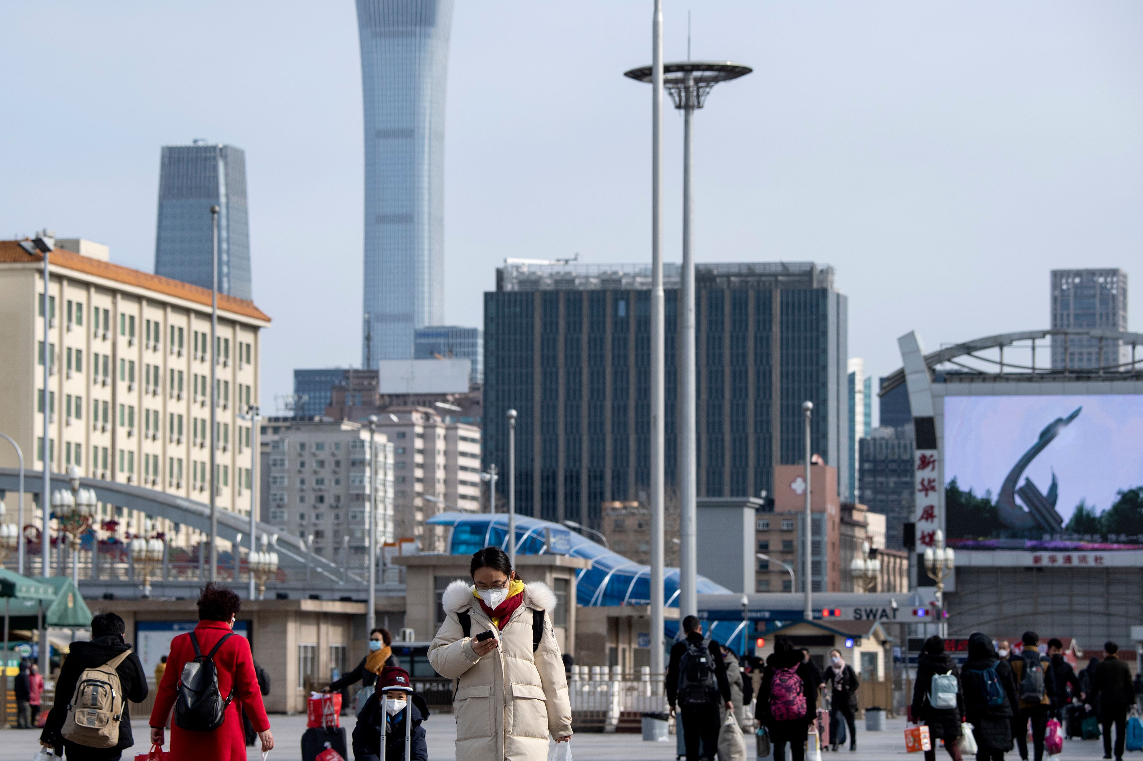 Travellers wearing facemasks arrive from various provinces at the Beijing Railway Station on Feb 3, 2020.