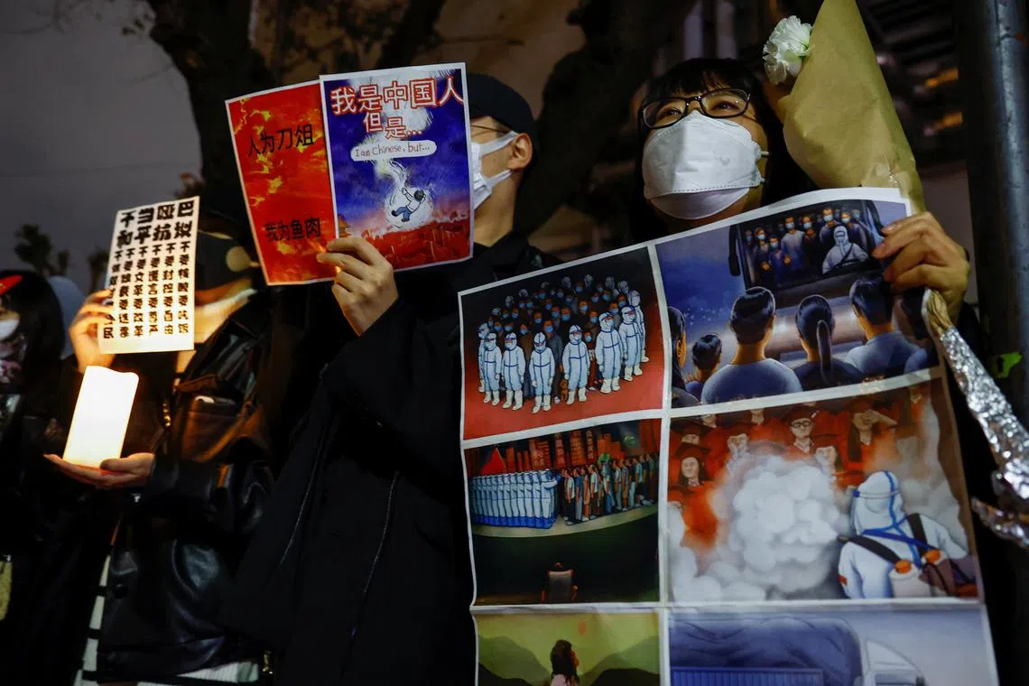 People protesting against China’s Covid-19 curbs near the Chinese embassy in Tokyo on Nov 28.