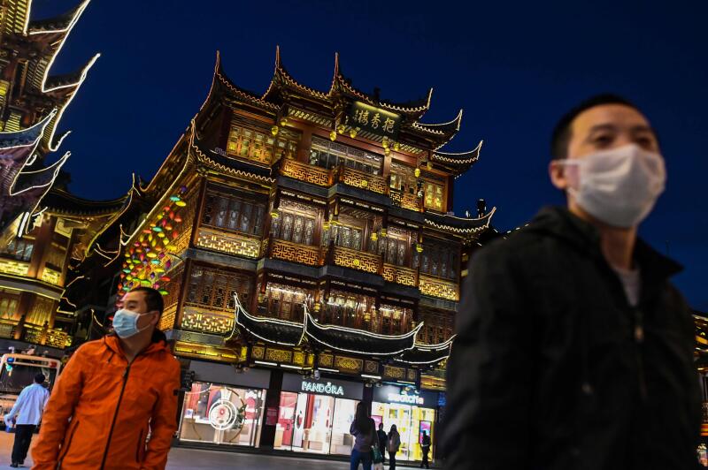 People wearing face masks as a preventive measure against the Covid-19 coronavirus visit the Yu Garden in Shanghai, on March 23, 2020.