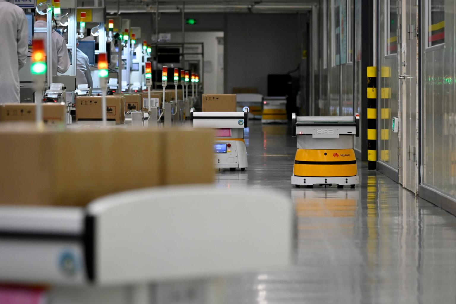 A transport robot is seen at a Huawei mobile phone factory in Dongguan, China's Guangdong province on March 6, 2019.