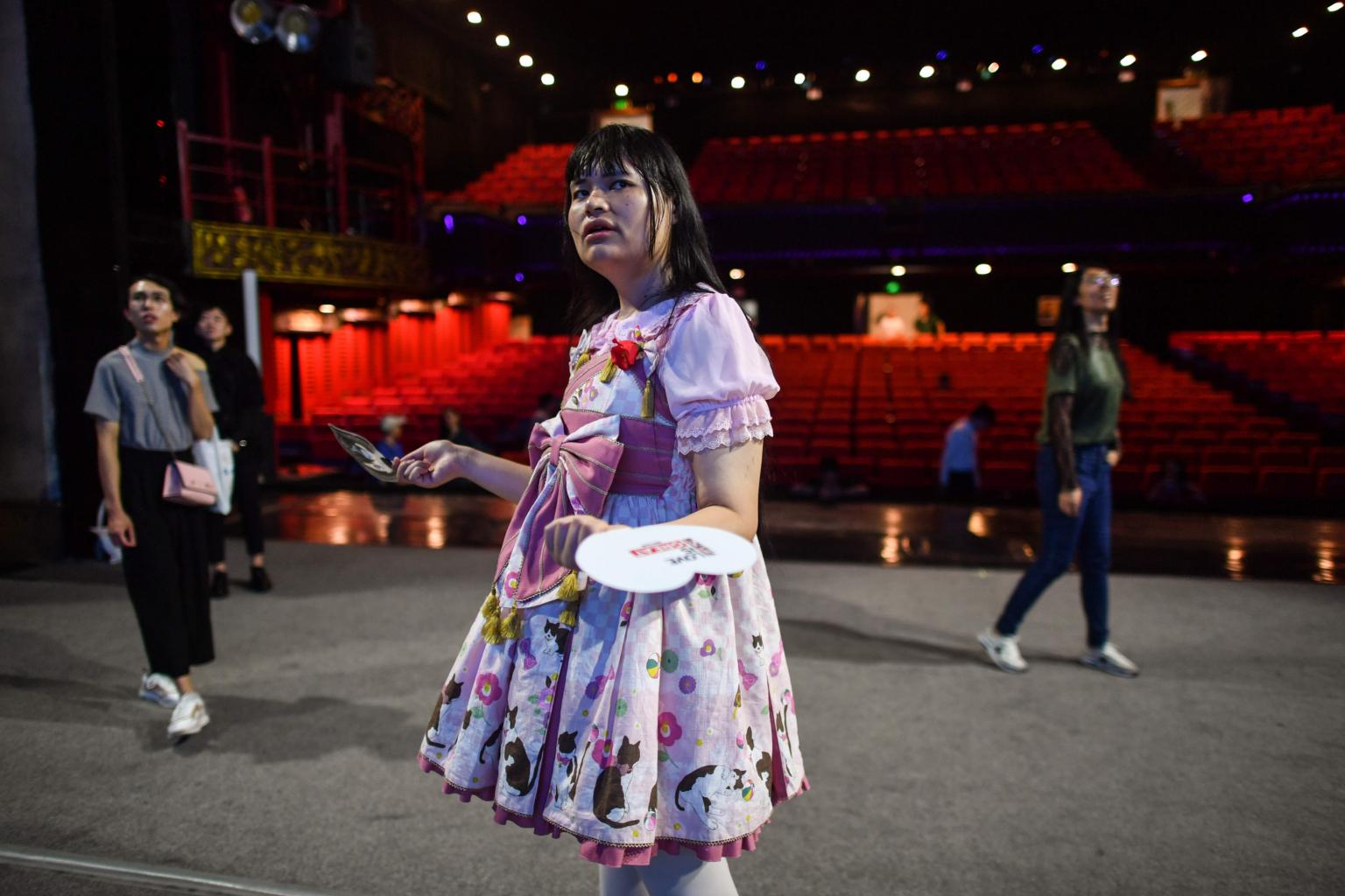 Transgender Alice, a member of the Trans Chorus, during rehearsal at a theatre one day before the group's musical presentation at a festival in the city of Chengdu in China's Sichuan province.