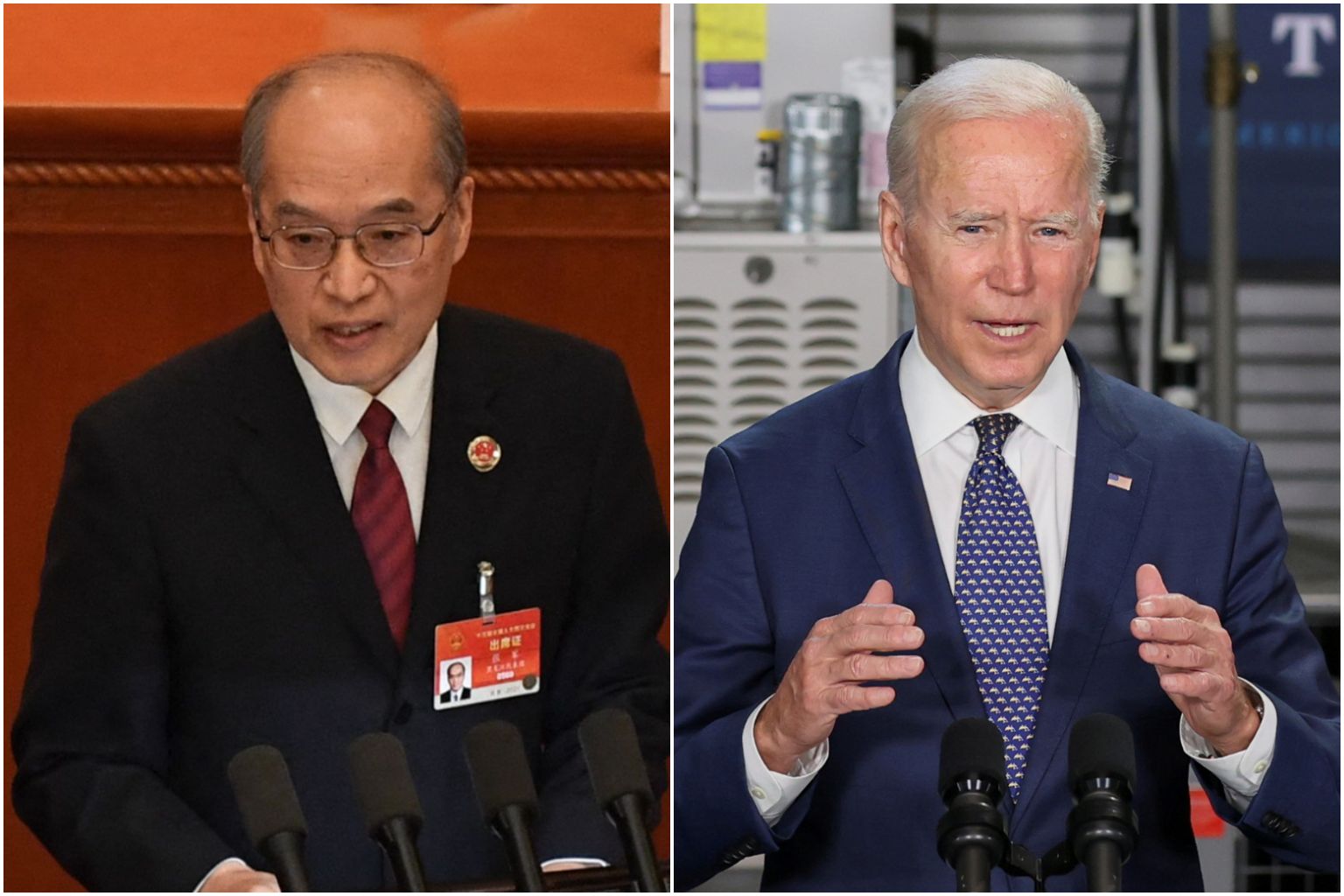 Chinese Ambassador Zhang Jun (left) and US President Joe Biden.