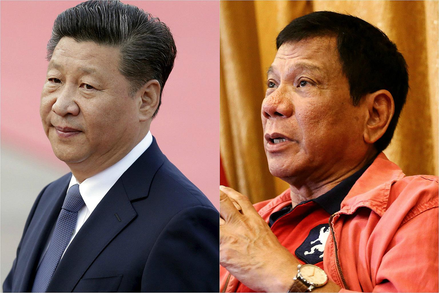 President Xi Jinping (left) has told new Philippine President Rodrigo Duterte that China hopes to improve relations with the Philippines after ties were affected over territorial claims in the South China Sea.