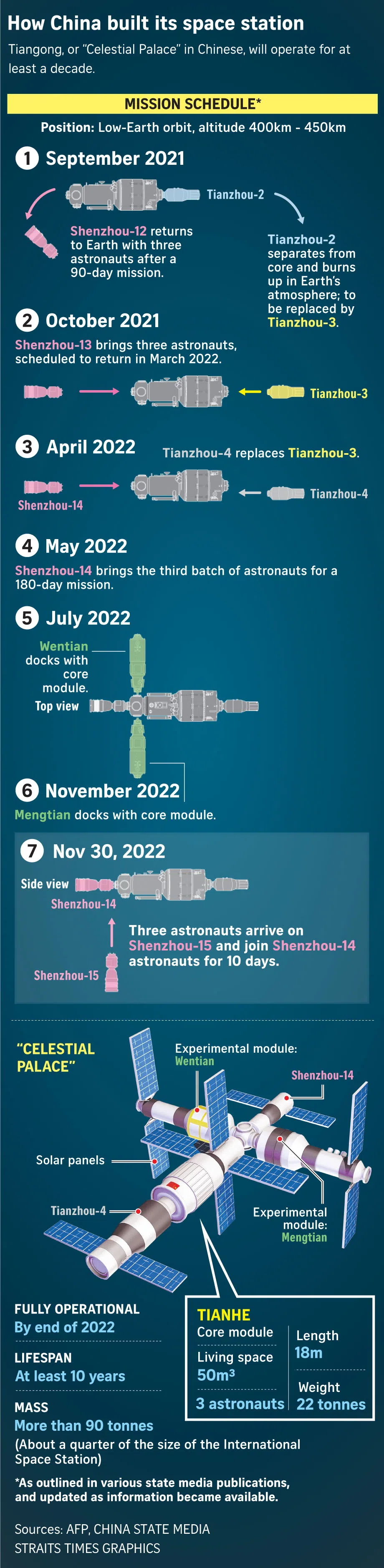 BEIJING - China sent a spacecraft carrying three astronauts to its space station for the first in-orbit crew rotation in Chinese space history, launching the operation of the second inhabited outpost in low-Earth orbit after the Nasa-led International Space Station (ISS).