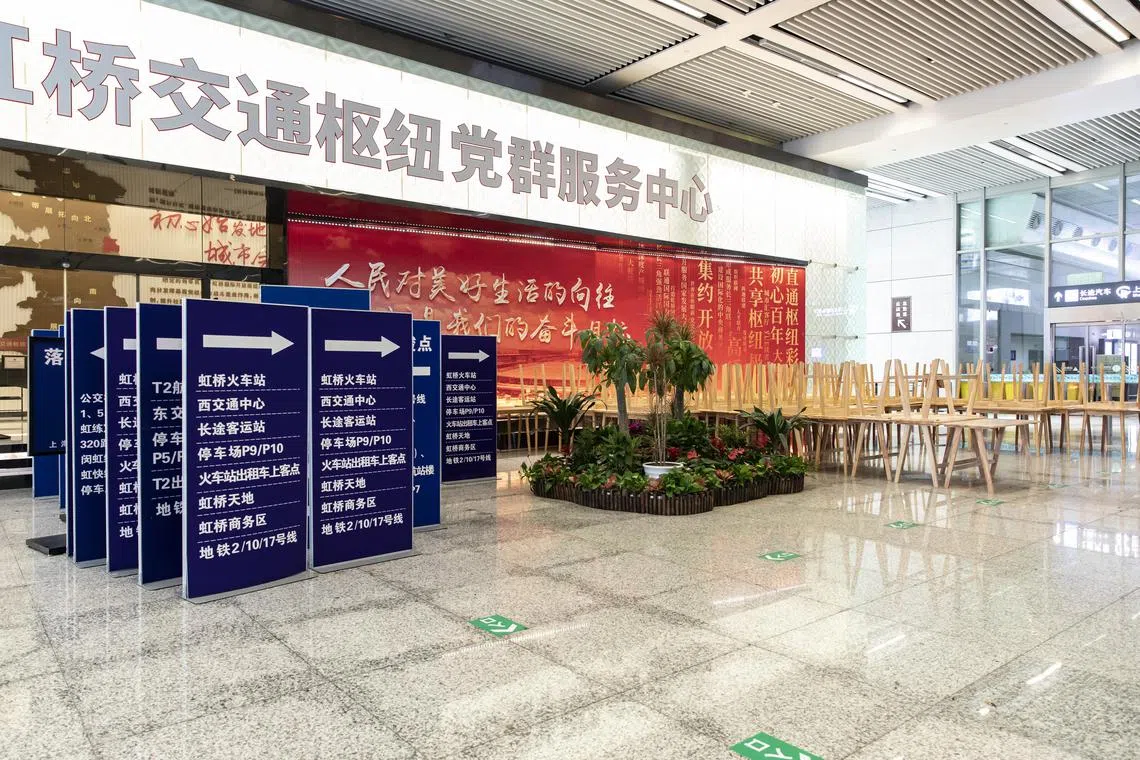 Equipment used for mass Covid-19 testing of incoming passengers are stored away at the Hongqiao Railway Station in Shanghai.