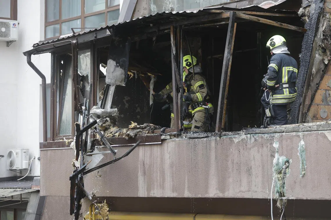 Ukrainian rescuers working at the site of a Russian drone strike on a residential building in Kyiv on July 21.