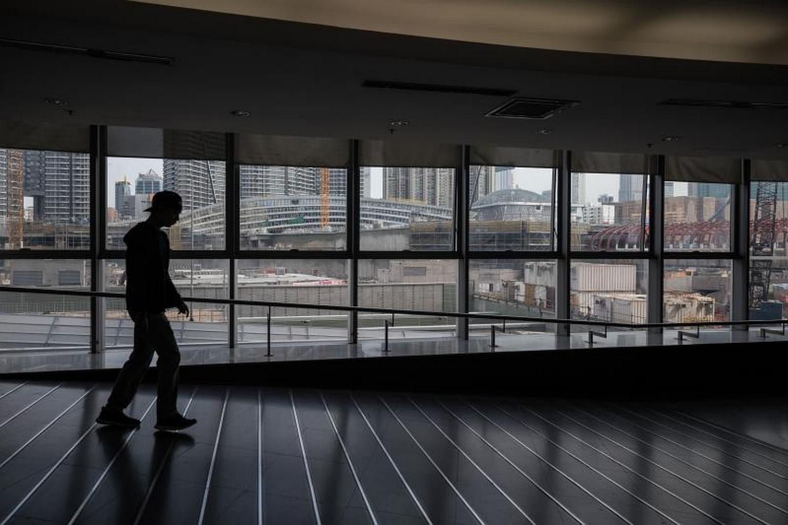 A man walks in front of the construction site of the West Kowloon Station of the high-speed rail link, which will connect the city to the southern Chinese city of Guangzhou, in Hong Kong on Nov 18, 2017.