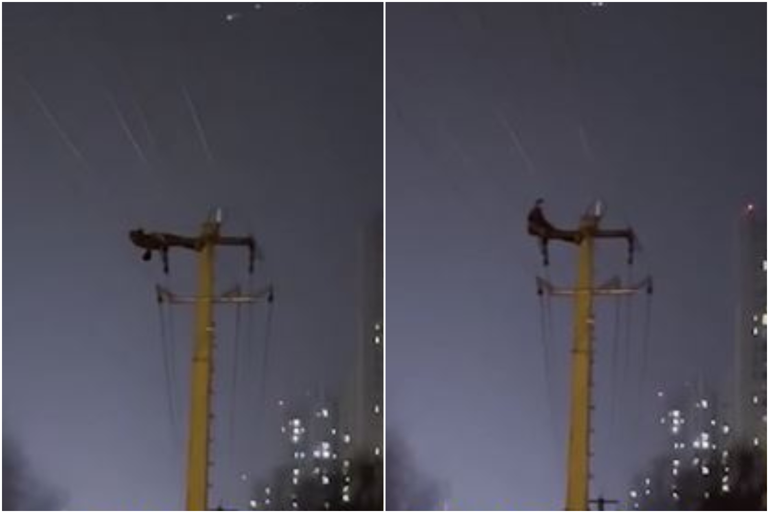Chinese man doing sit-ups atop utility pole forces electricity firm to cut power
