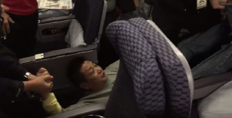 A YouTube video of the incident shows Mr Lu kicking and screaming while officers and passengers attempted to drag him down the aisle.