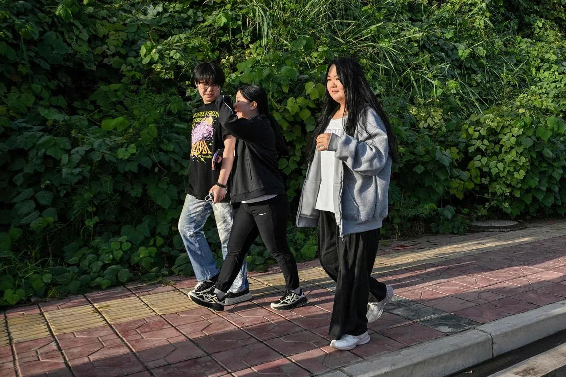 Ms Yang Chi’ao (right) taking part in a 10km walking exercise as part of a training session at a weight-loss camp in Chengdu, in China’s south-western Sichuan province.