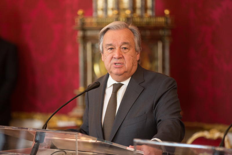 UN Secretary-General Antonio Guterres speaks during a press statement at the Hofburg Palace in Vienna on May 14, 2018.
