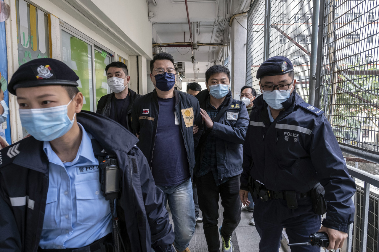 Police officers escort Andrew Wan, a pro-democracy politician in Hong Kong, on Jan 6, 2021.