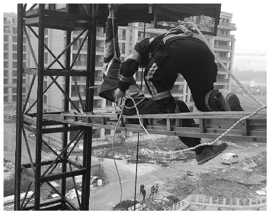 A construction worker who was suspended in mid-air by a safety rope was saved by firefighters in a daring rescue in Hangzhou, Zhejiang province, on Sunday (Dec 4).
