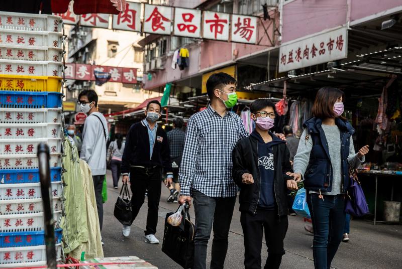 A photo taken on Feb 20, 2020, shows people with protective masks in Hong Kong.