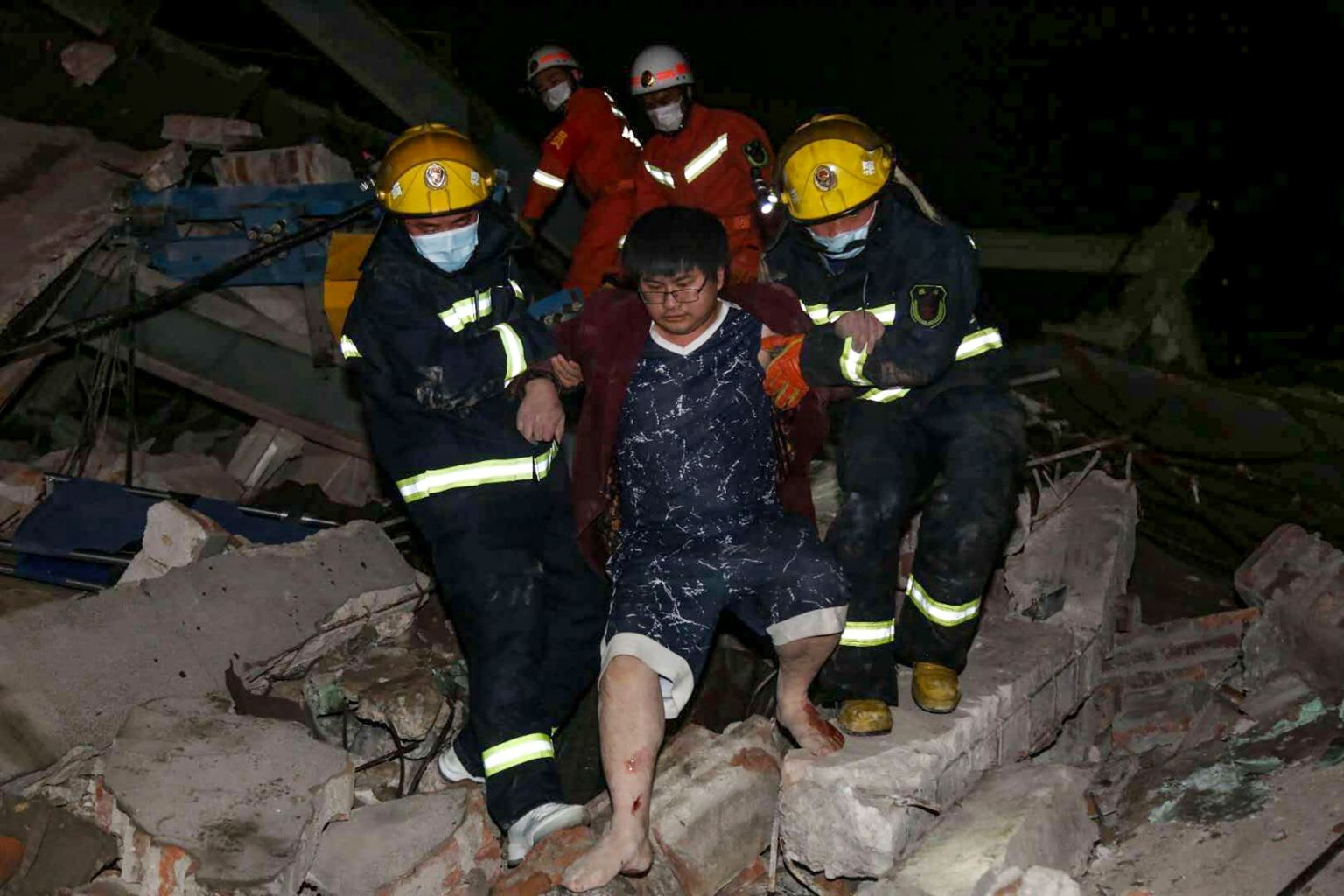 Footage circulating on microblogging platform Weibo later showed rescue workers combing through the rubble of the 80-room hotel in coastal Quanzhou city in Fujian in the dark as they reassured a woman trapped under heavy debris and carried wounded victims into ambulances.