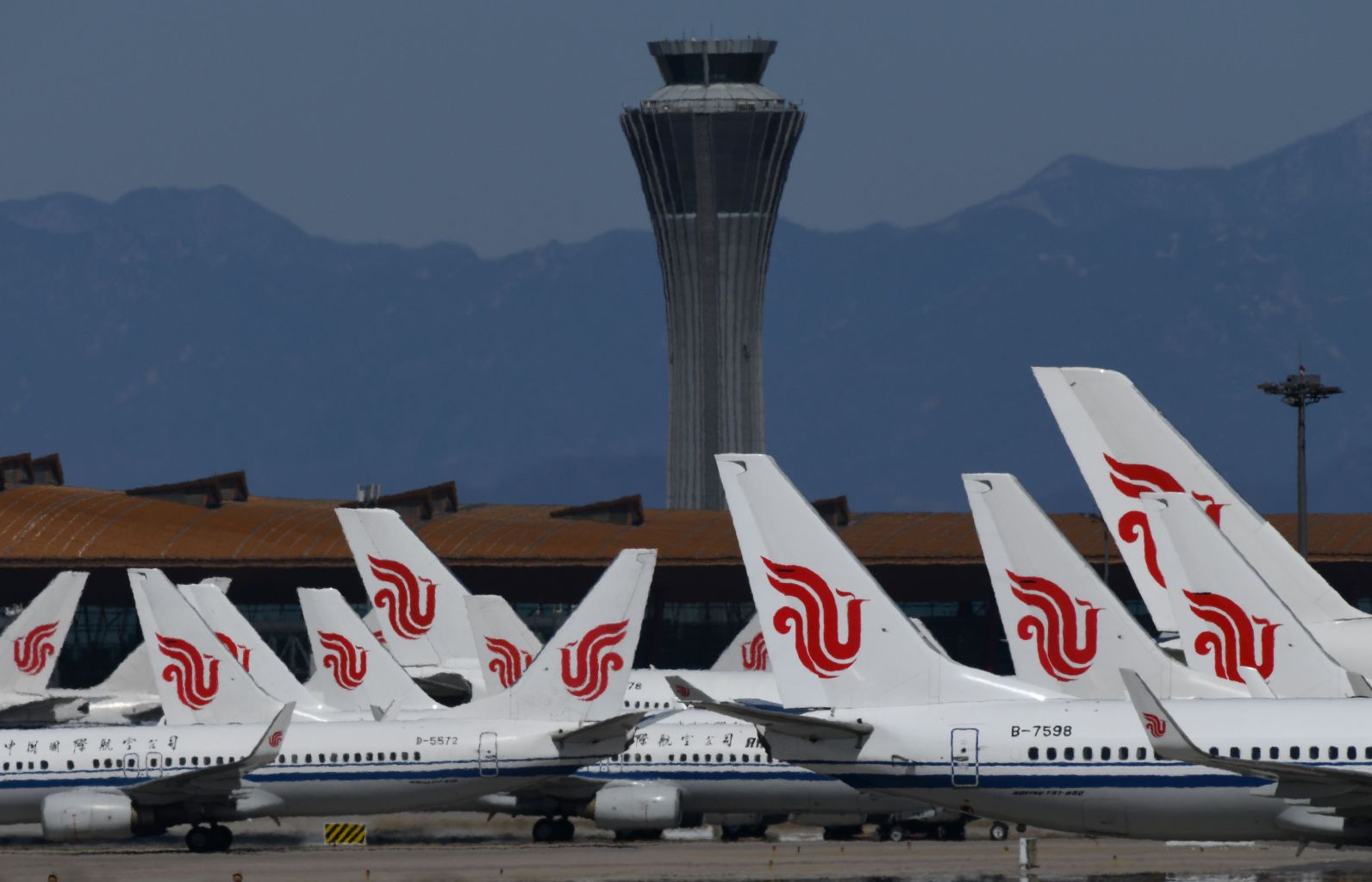 Air China planes are seen parked on the tarmac at Beijing Capital Airport, on March 27, 2020.