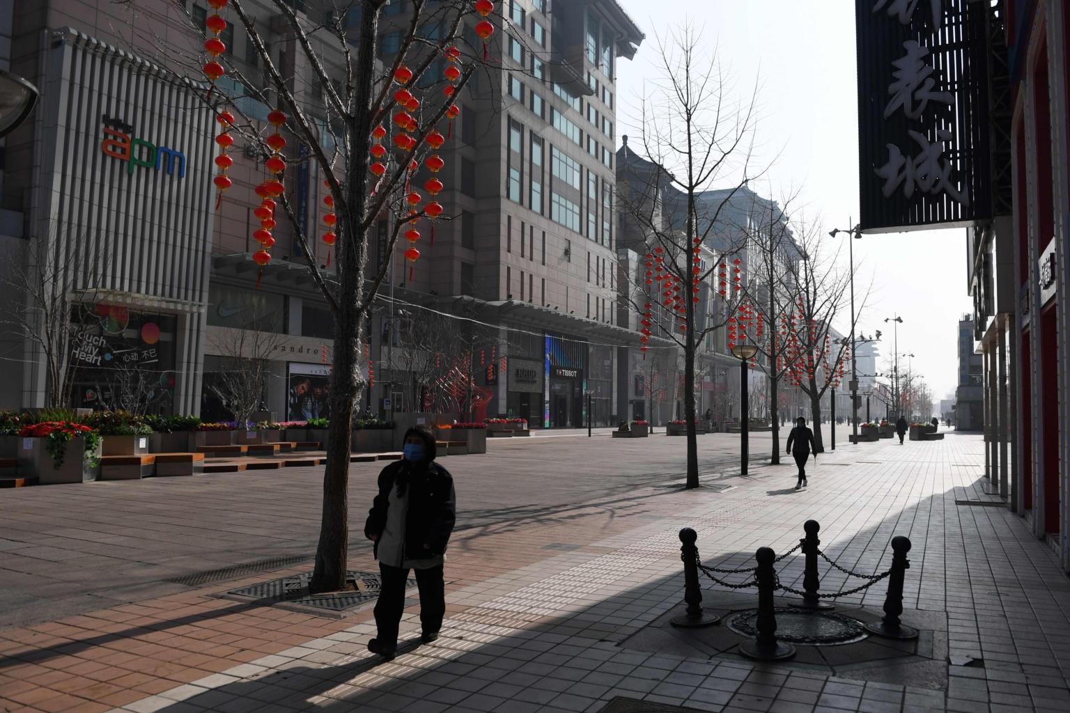 A woman walks in the normally bustling Wangfujing shopping street in Beijing, where the coronavirus outbreak has taken a toll on small-to-medium sized businesses, on Feb 10, 2020.