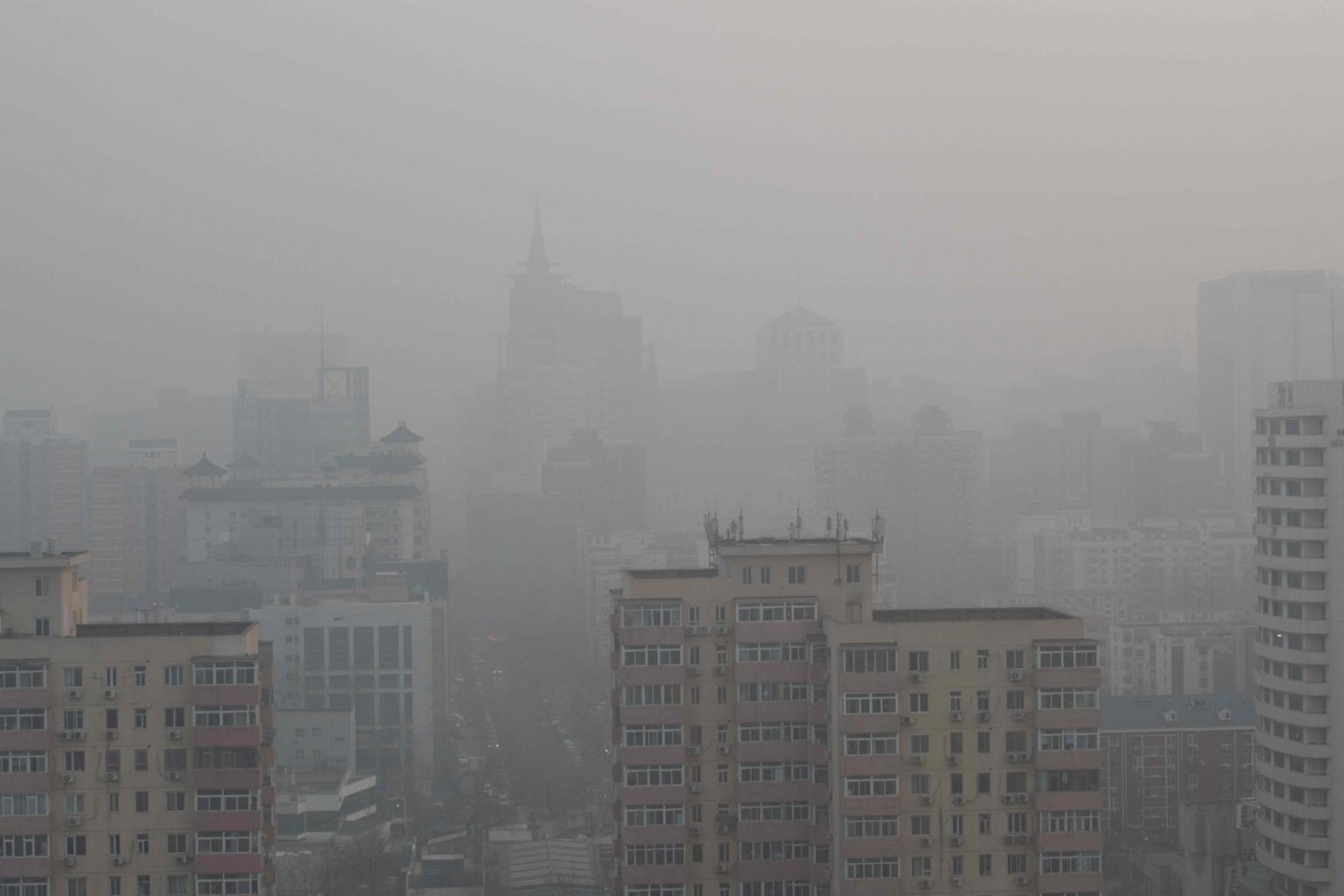 A photo from Jan 18, 2020, shows buildings on a polluted day in Beijing.
