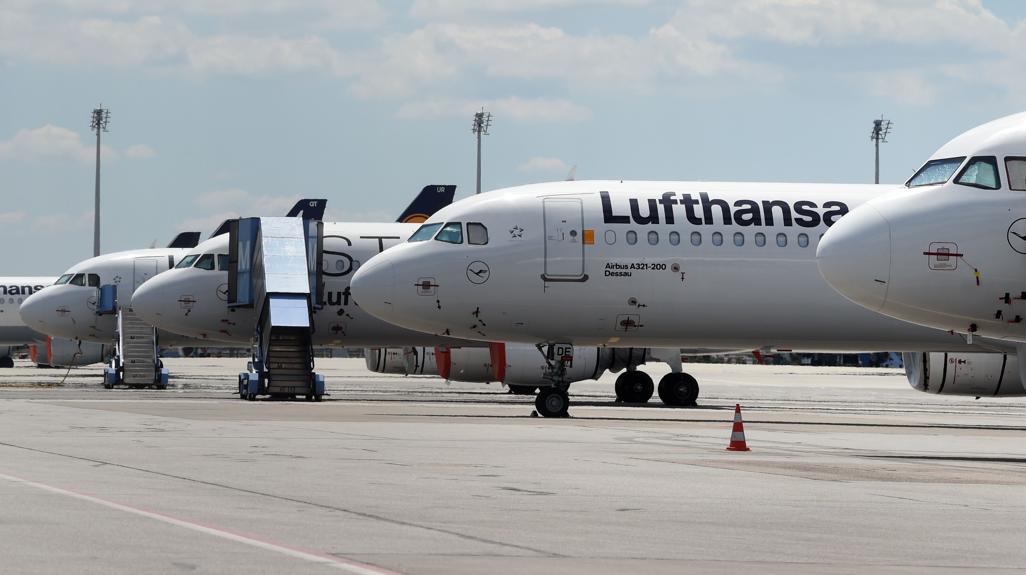 Planes of the German airline Lufthansa are parked at the "Franz-Josef-Strauss" airport in Munich, Germany, on May 27, 2020.