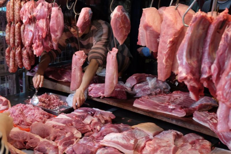 A market selling pork in New Taipei City. Taiwan has imposed a ban on live pigs and pork product imports from Italy following Rome's suspension of flights between the two sides.