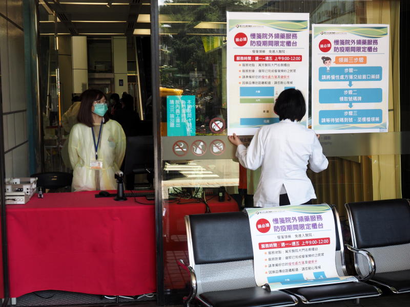 Healthcare workers outside a hospital in Taipei, Taiwan, on Feb 12, 2020.