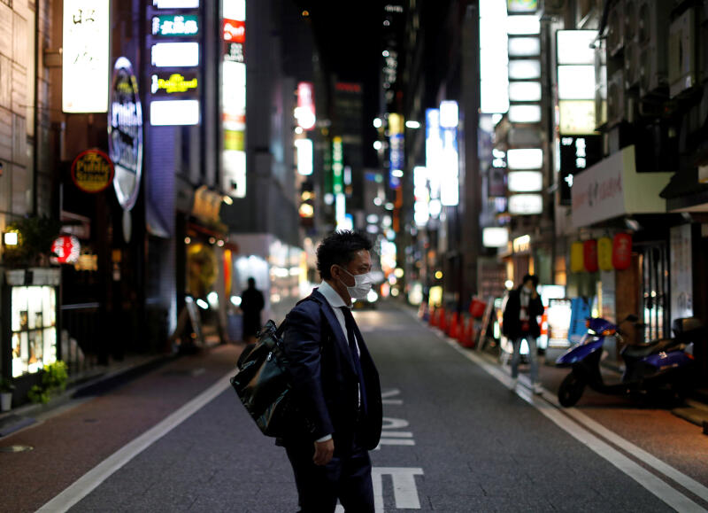 A man wearing a protective face mask walks in Tokyo, Japan, on April 2, 2020.