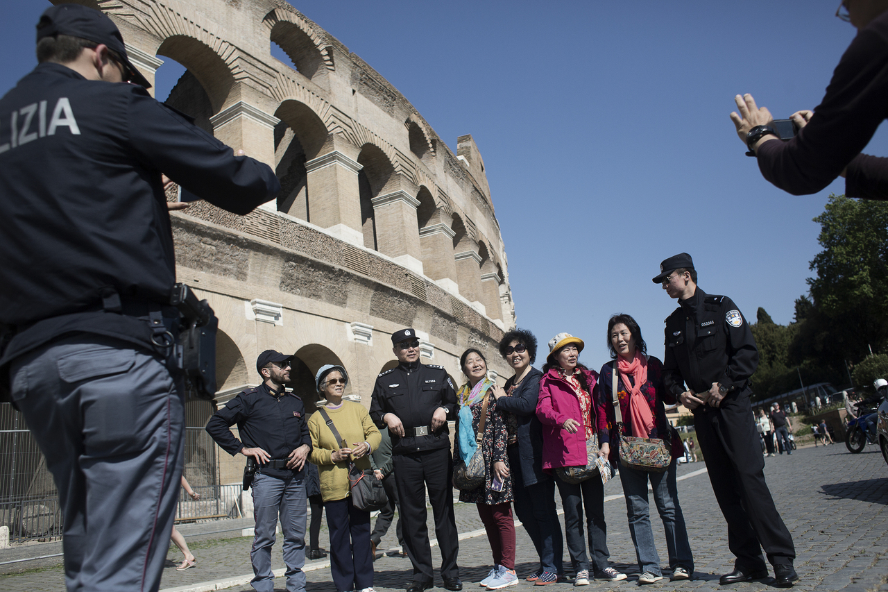 Chinese tourists in front of the Colosseum in Rome, May 5, 2016.