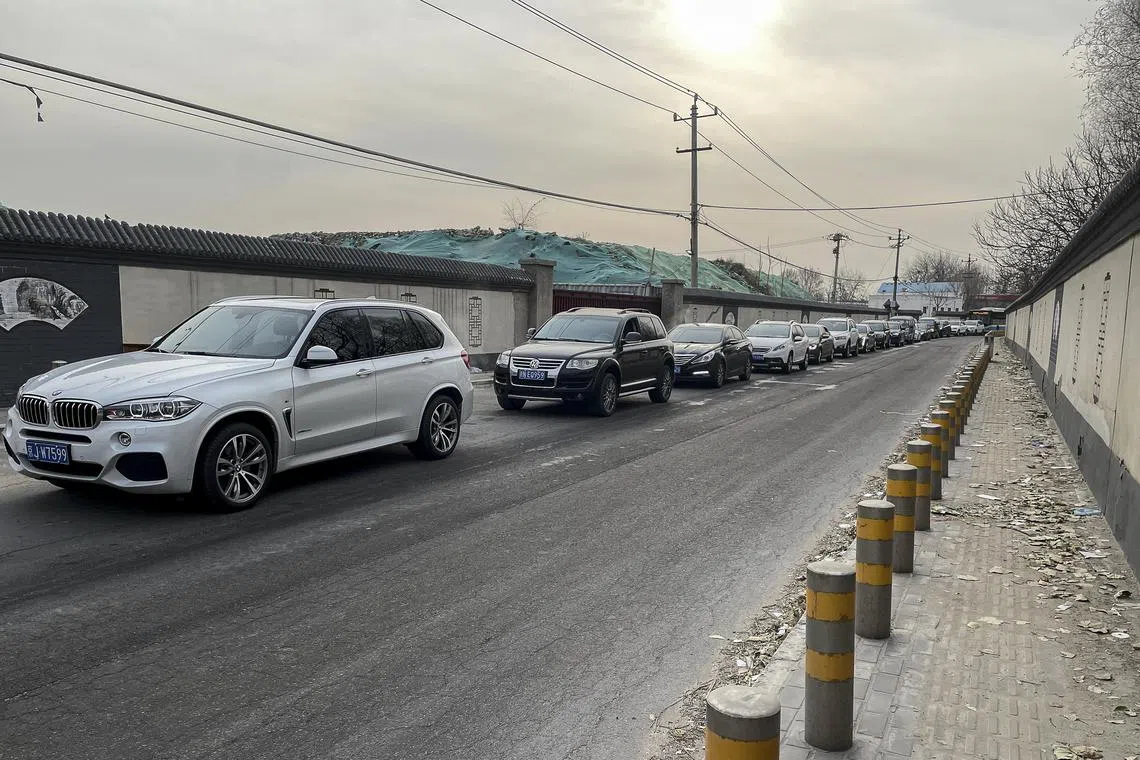 A line of cars waits to enter the Dongjiao funeral parlor and crematory in Beijing, China, on Dec 20, 2022