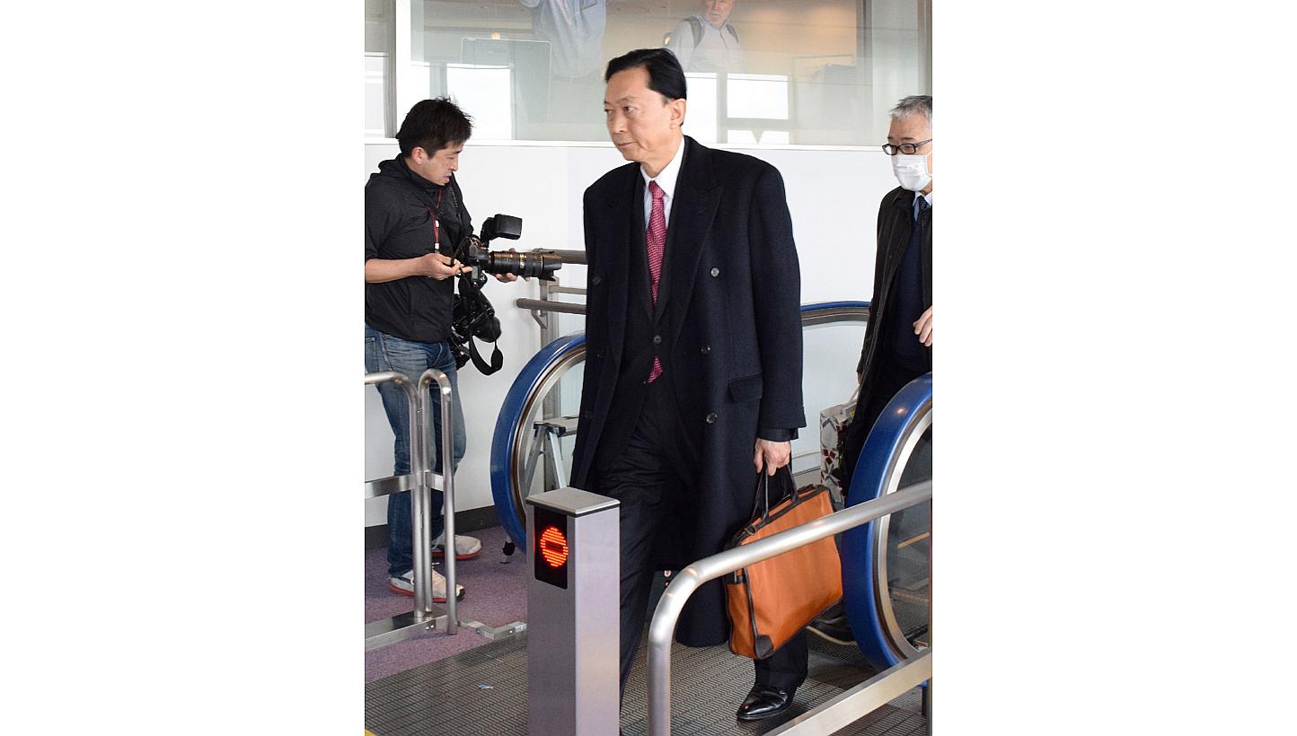 Yukio Hatoyama, who arrived at Narita airport near the capital, did not speak to journalists awaiting his return, but had said during his trip that life there was "happy" as he slammed Tokyo's position on Russia's annexation of the Black Sea peninsula.