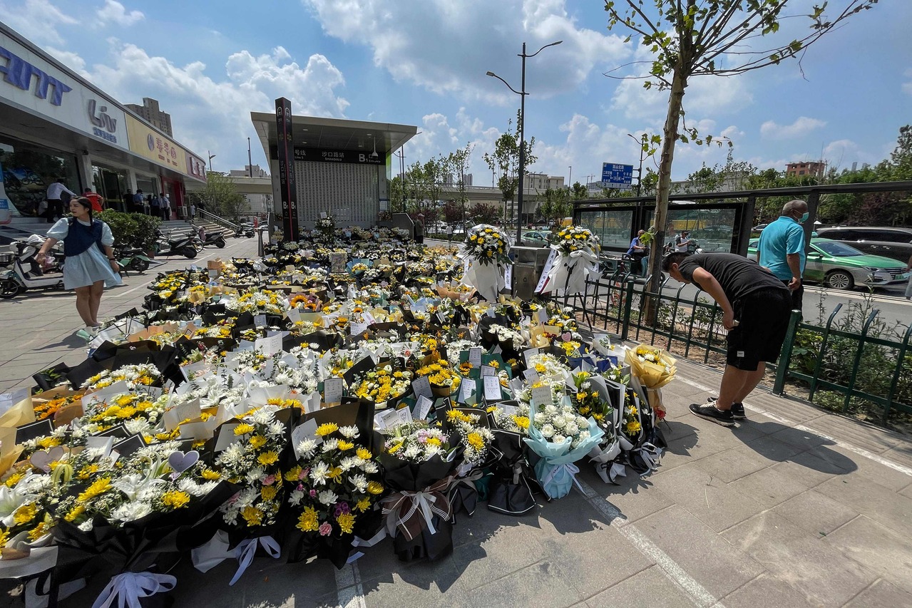 Subway guards eventually blocked access to the floral tribute, but a video published by state-run West China Metropolis Daily on Tuesday showed a group of people pushing aside the yellow barricades on Monday night, chanting "let the spirits of those who died come back home!"