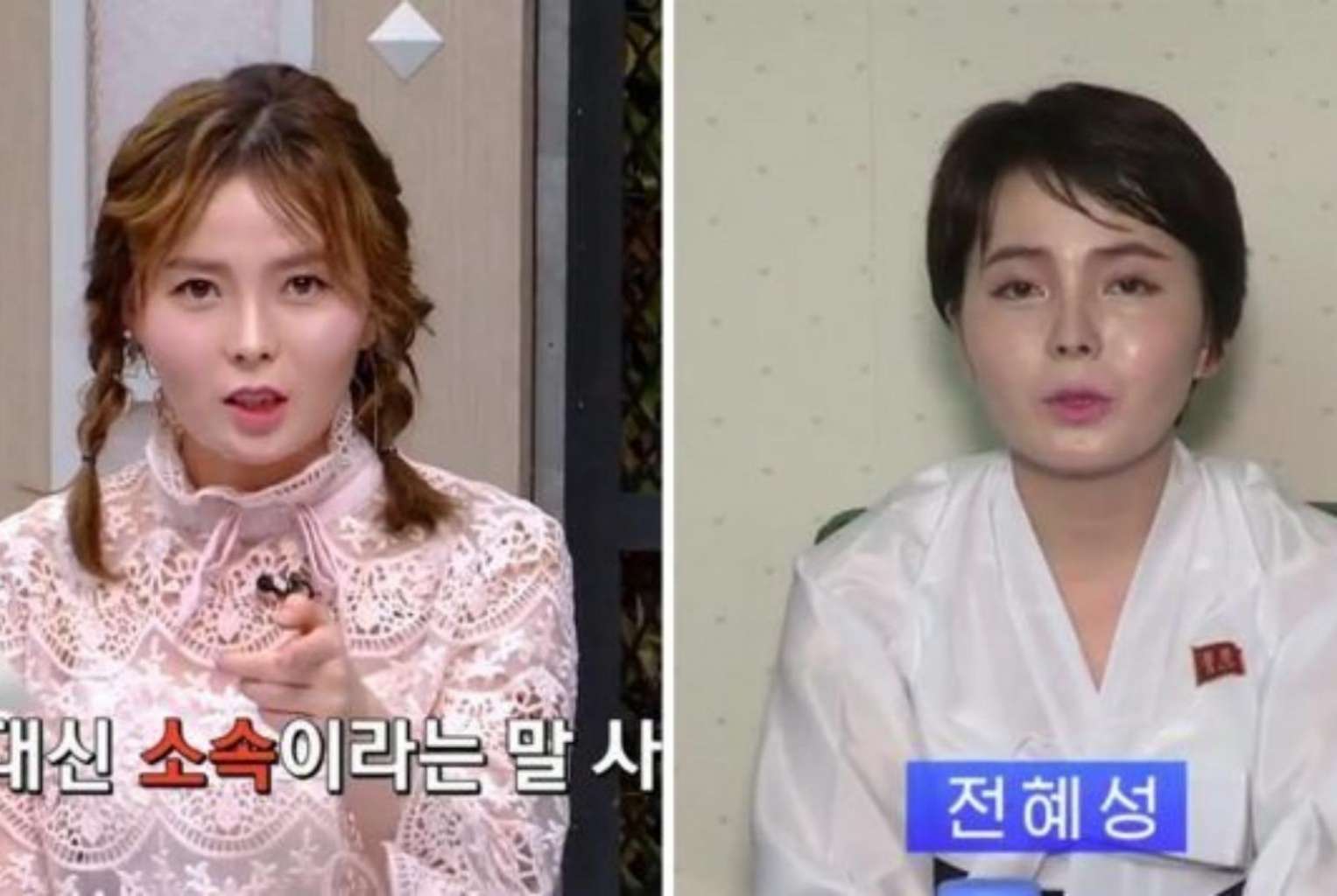 Im Ji Hyun, who was a modest television celebrity in South Korea (left), was seen in a videotaped interview uploaded on the North Korean government-run propaganda website Uriminzokkiri (right).